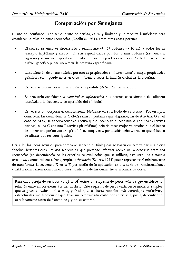 Alineamiento de secuencias y búsquedas en bases de datos: Página 6 de 28.