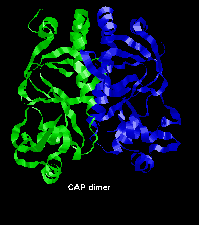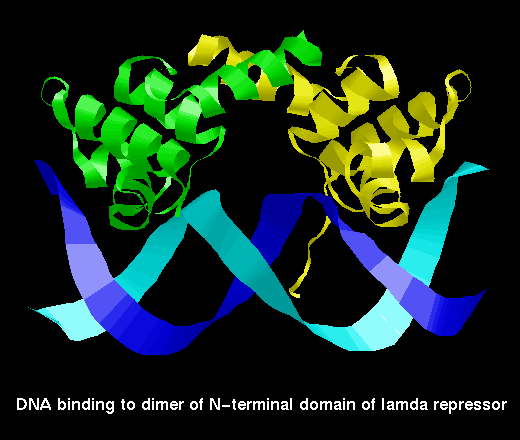 The DNA-binding helix-turn-helix supersecondary structure has already been introduced (in the Supersecondary Structure part of Section 9). A number of proteins with this motif exist as dimers which bind to specific regions of DNA in prokaryotes, thereby regulating transcription. The dimerization of these proteins strengthens their interactions with DNA; the formation or dissociation of the dimers is an intrinsic part of the regulatory mechanisms.