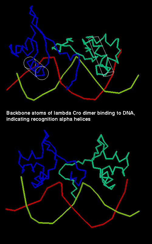 SCRIPT 2 (for structure 4cro) highlights the recognition helices in white, and displays the DNA.