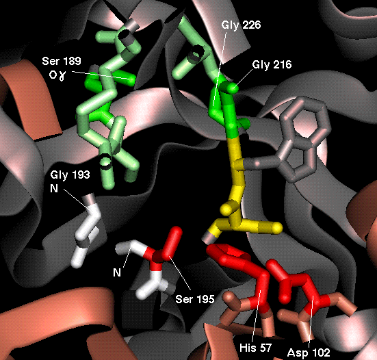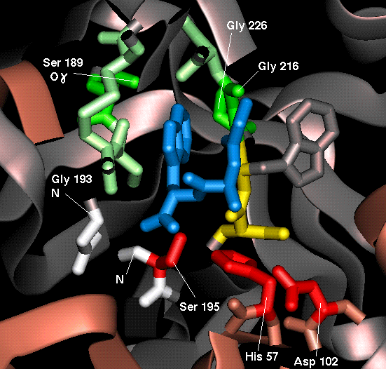 white Ser-195 main chain 2 3,4 Specificity Pocket Ser-189 side chain 2 5,6
