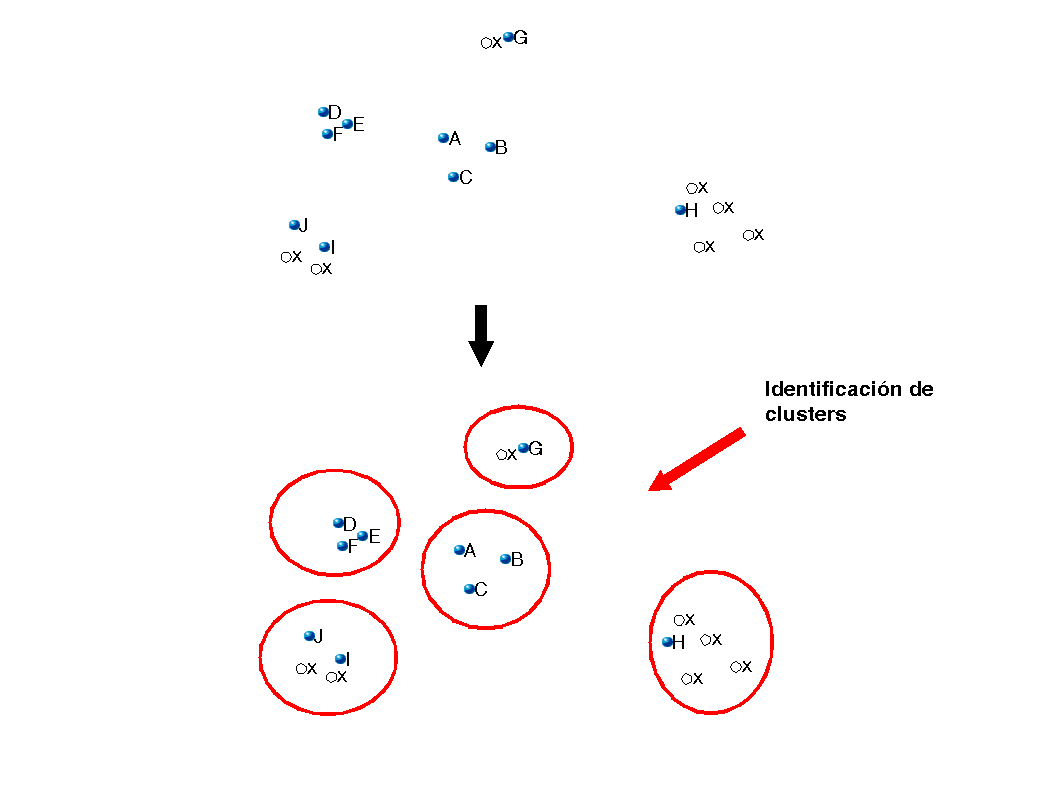están agrupadas en 'clusters' mediante un algoritmo que trata
