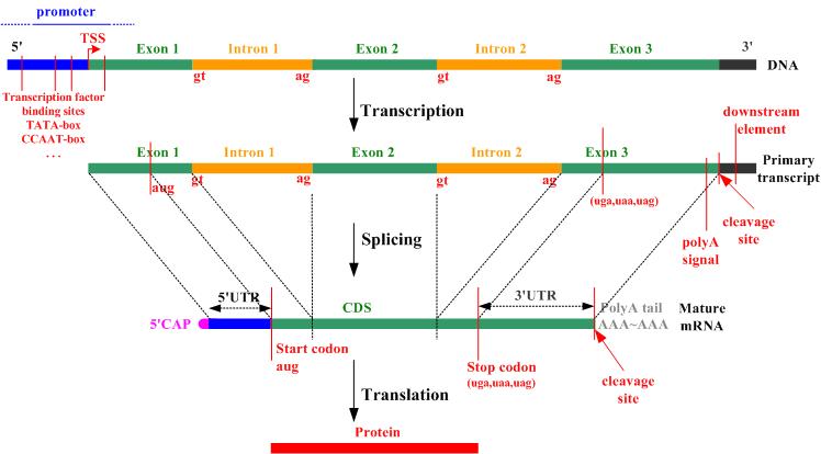 3) 5'UTR, que incluye normalmente el sitio de unión al ribosoma