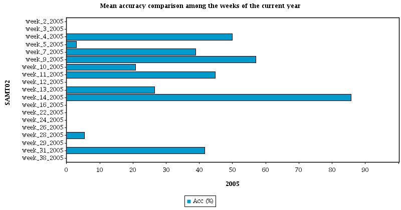 | Mean accuracy comparison for SAMT02 among the weeks of the year 2005 |