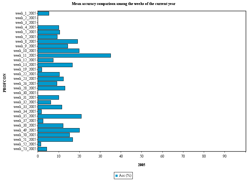 | Mean accuracy comparison for PROFCON among the weeks of the year 2005 |