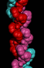 of the triple-helix. To obtain a similar rendition with RasMol, colour