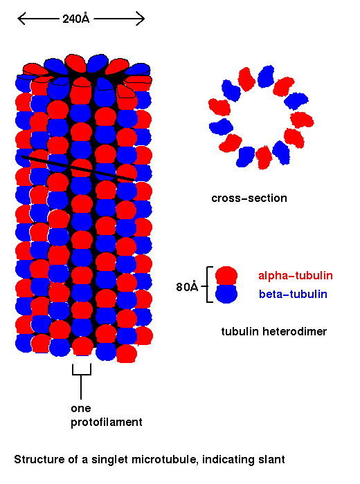 A doublet microtubule consists of 23 protofilaments in a figure-of-eight arrangement. A ring of nine doublet microtubules, with two singlet microtubules at the centre, forms the basis of cilia and flagella .
