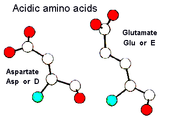 interactions with positively charged basic amino acids. Aspartate and glutamate