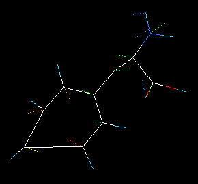 ![]() The direction in which atoms should be displaced in order to reach a lowe energy state are shown by dotted lines (this facility can be enabled from the Display menu), a minimal deplacement appears in dark blue, while a big deplacement appear in red (blue-green-red gradient).