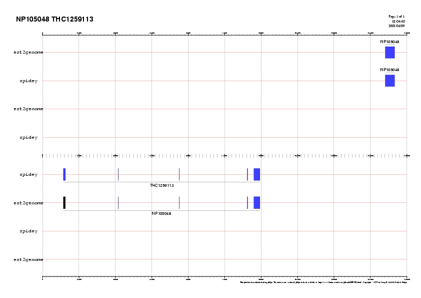 - Finally, compare our predictions to the protein annotation for these cDNAs: for NP105048 and for THC1259113