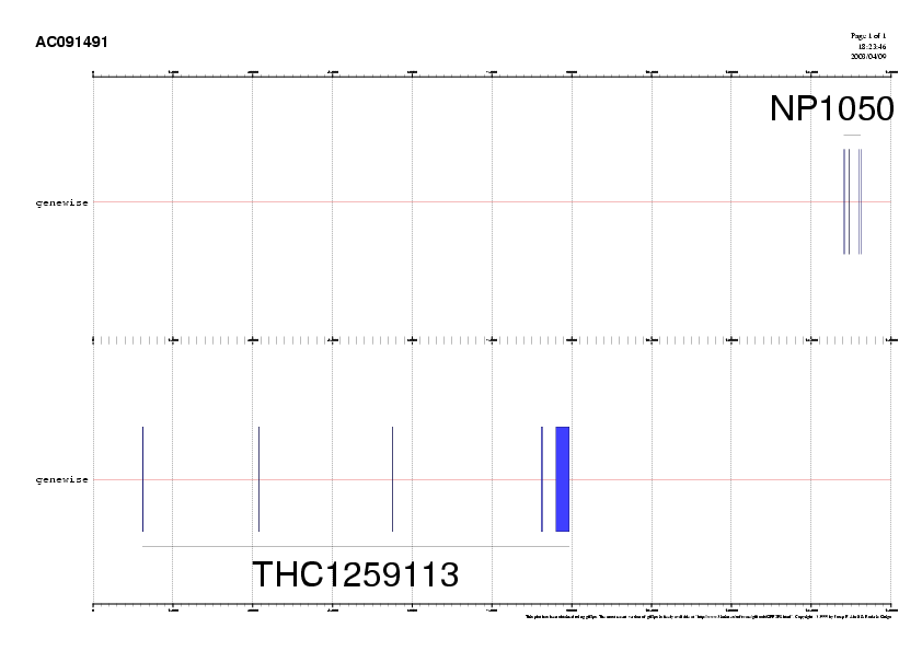 - Check the gene prediction in NP105048.prot.AC091491.genewise
