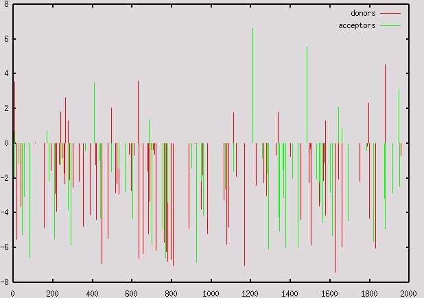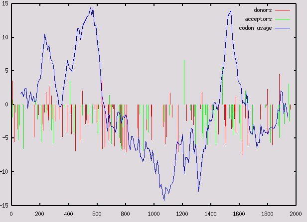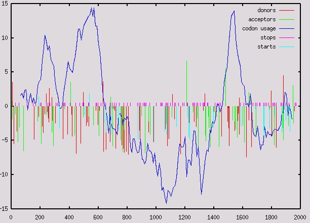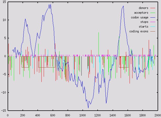 In one approach--that we call here ``exon-chaining approach''--, we just predict all potential exons that can be defined from the predicted splice signals, and score them according to the scores of the signals and of the codon bias in the exon sequence. Then, we just assemble the frame compatible chain of exons that maximizes the sum of the scores of the assembled exons.