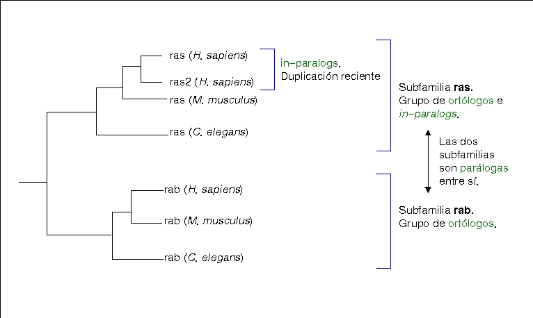 Pero para describir las relaciones entre las proteínas vemos que se nos queda corto el concepto de homólogos, por lo que a veces hablamos en términos de superfamilias, familias y subfamilias y también hablamos de ortólogos y parálogos.