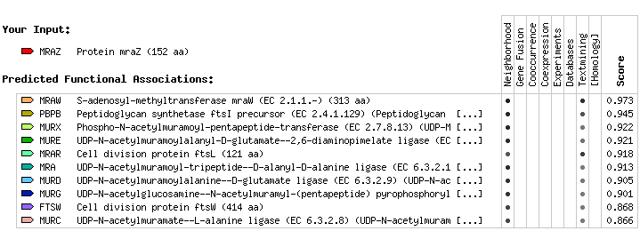 Neighborhood Gene Fusion Co-occurrence Co-expression Experiments Databases Textmining |