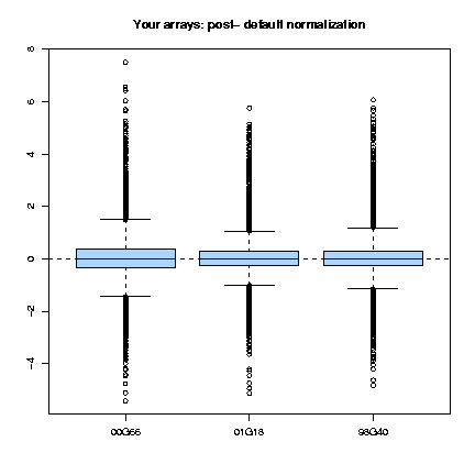 Fig. 1: Pre- and post-normalization boxplots for 3 arrays.