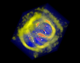 Figure 11: A slice plane cutting a volumetric density distribution. This time, a stack of slice planes is used to produce a volume-rendered representation. (Animation).