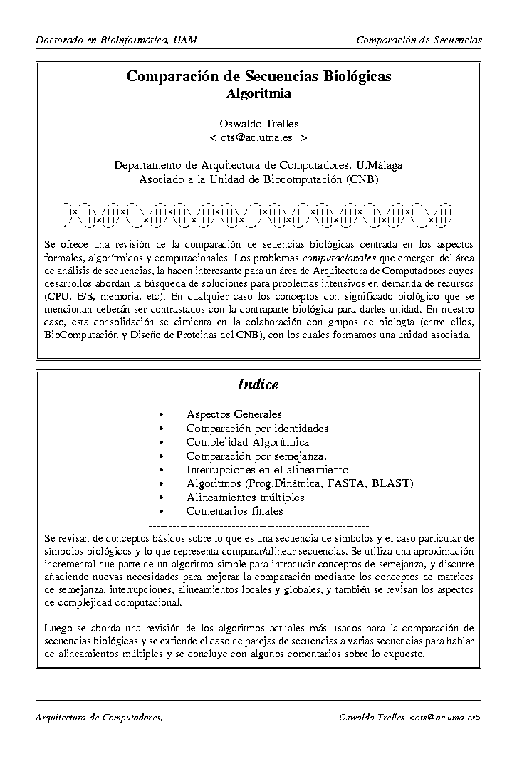 Alineamiento de secuencias y búsquedas en bases de datos: Página 1 de 28.