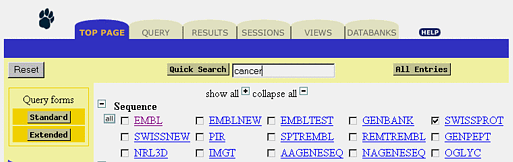 This will bring up the "Databank Information" page for SWISS-PROT.