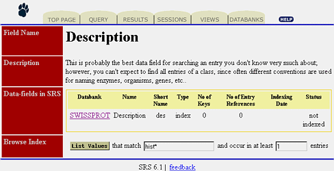 For the example below we will search the SWISS-PROT databank for "hist*"