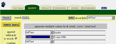 according to the SRS query language rules. Type "1-Jan-1998:" and change