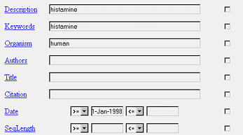 the "Description", "Organism", "Date", and "Keyword" fields. (Use more