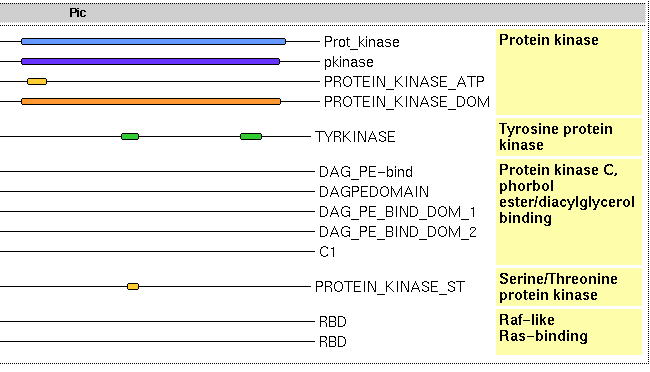 SM00219;TyrKc (2090 proteins)of which only that of PRINTS appears in raf1_human. This family is defined by 5 motifs in PRINTS, of which RAF1_HUMAN only has two.